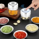 This mini chopper, mincer, and grinder come with a versatile design as it has a non-slip grip Silicon base. Makes prep work a breeze as you can chop ginger, garlic, carrots, peppers, nuts, and cheese with one press of a button and make delicious salads, and salsas and have a great picnic in your own backyard. You can also mash baby food in it and not worry about anything as it is BPA free non-toxic and food-grade plastic. It comes with a USB charger. Cleaning it is easy and convenient too.