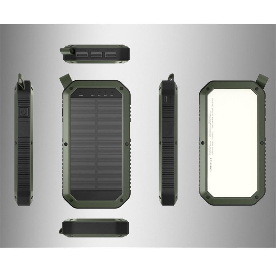 Charge any mobile phone 150% fully and charge any Tablet 100%. Also charge many devices like Cameras, Watches, and Toys 100%. The huge power capacity takes care of it all. The Solar panel charges your power bank and regenerates all the power again. This water-resistant power bank is perfect for indoors or outdoors and great for quickly lighting up an area 8 ft x 8ft with its LED floodlights.